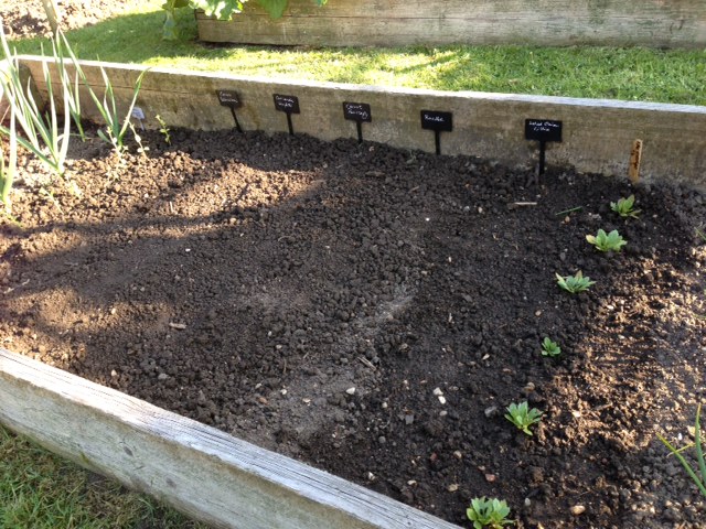 A happy discovery too; the box hedging that my Darling gave me last Christmas, planted as bare root into lovingly dug and manured trenches around a new square bed I’d rescued from nettle-throttledome, is putting on new growth, with lots of tiny green shoots appearing. I had been very concerned to see last year every leaf develop a nimbus of yellow, causing me to fear the arrival of box blight. The lady at the RHS information desk at Wisley had said it may be trauma due to planting and the dreadful wet summer – and so it has proved to be. I’m very pleased, and to celebrate did some forensic weeding around the roots and treated them to a little sprinkle of fish & bone. I’ve planted wild strawberry ‘Alexandria’ (grown from seed from ebay last year) all around the internal edge, which I think will look lovely when it’s had a bit of warmth to help it fill out. Then the plan is potager-style rows of different lettuce and parsley, perhaps beetroot too if there’s space. We’ll see.