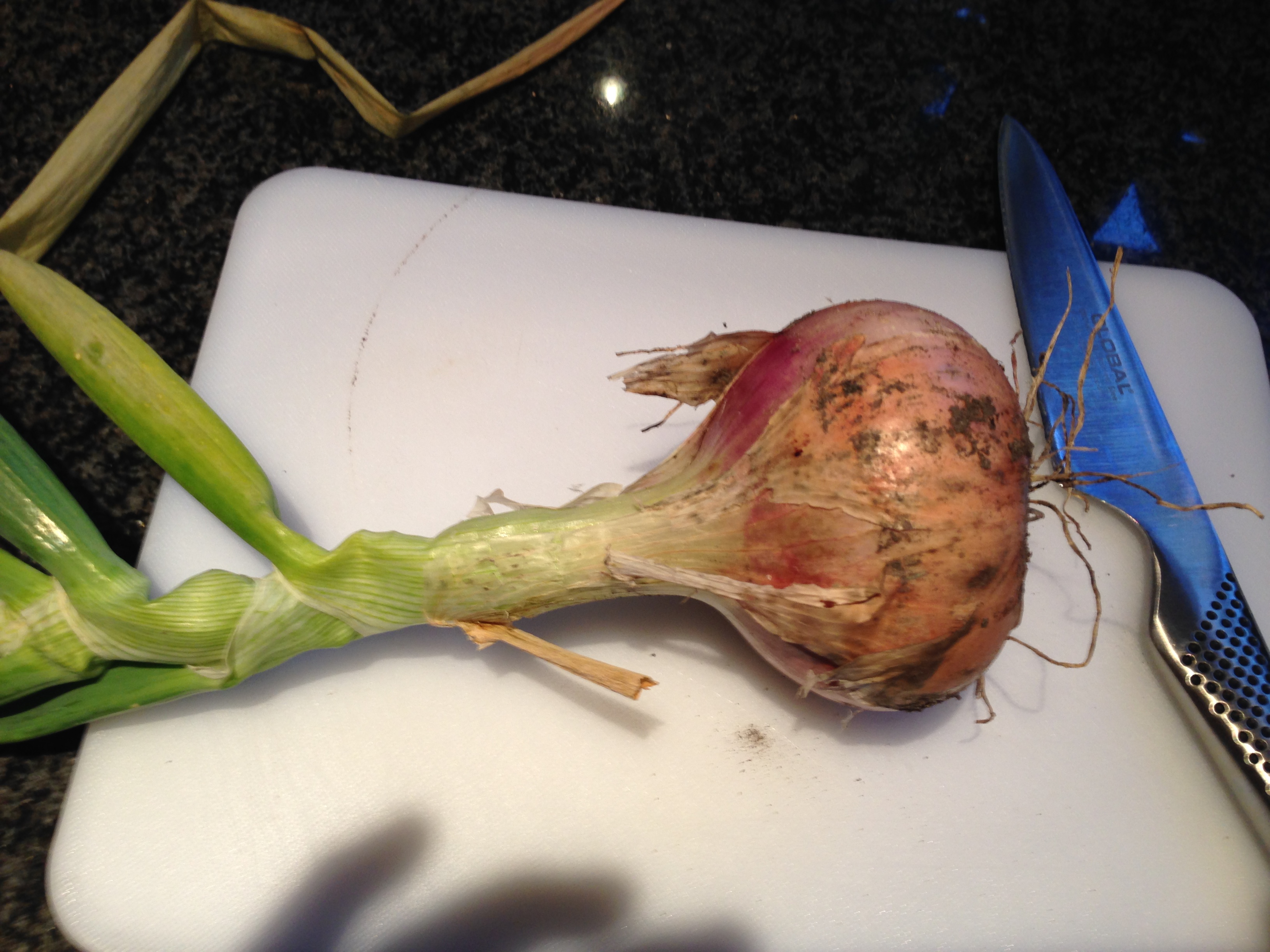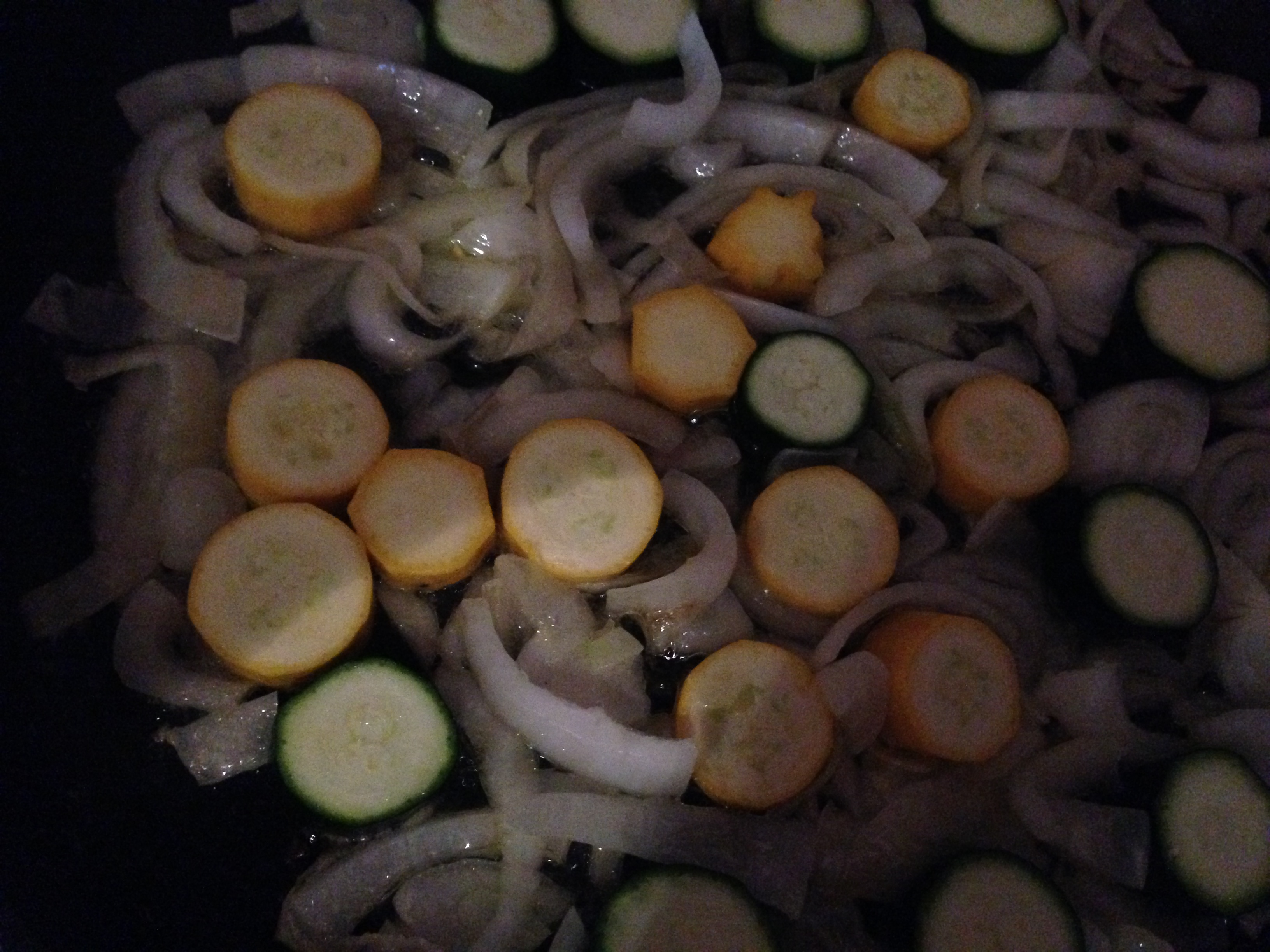 I was overtired. You can see for yourself the consequence of delusional thinking that strength would prevail, despite an excellent start entailing a newly harvested pink French onion (the triumphant very first), yellow and green baby courgettes and my friend Mo’s fresh eggs….