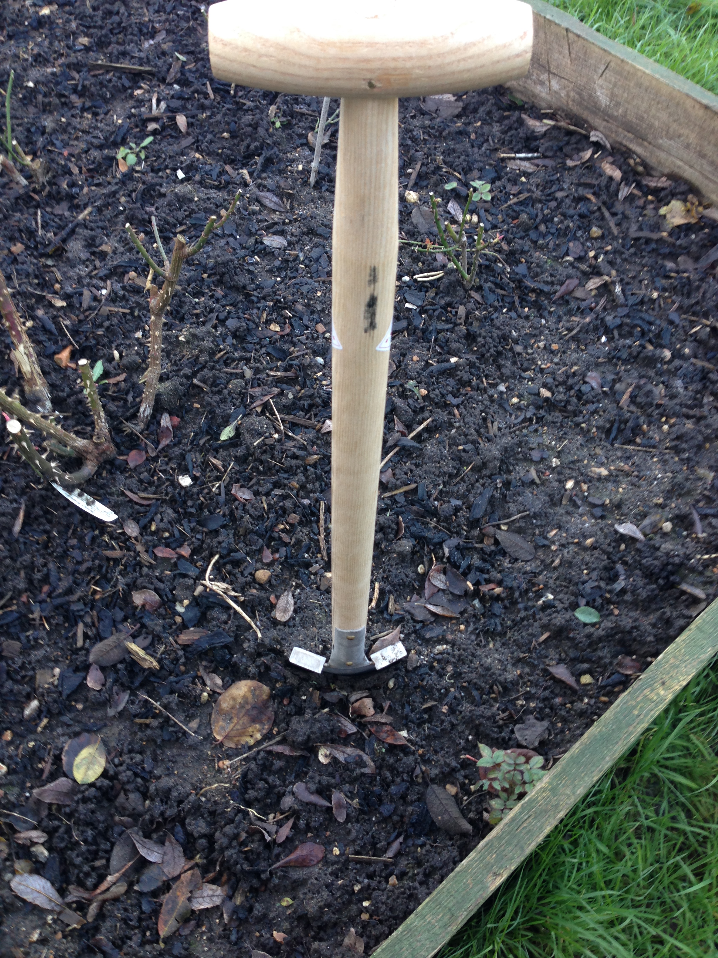 Due to a mixture of laziness, other priorities and a pusillanimous reluctance to engage with the chill dampness, I have been sadly neglectful of the huerto over recent times. However, a delightful array of gardening Christmas presents filled me with zeal and thence to work. Here’s my wonderful new Dutch spade (there’s also a new fork, which I have promised not to break!)