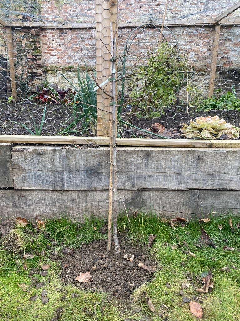 Hence the purchase of two damson trees (Merryweather and Farleigh, both AGM varieties) when there is really no more space for planting. Necessity provided the answer: grow them as cordons against the vertical supports of the vegetable enclosure so they don’t create unnecessary shadow.