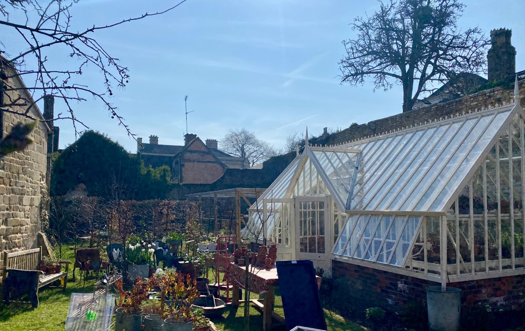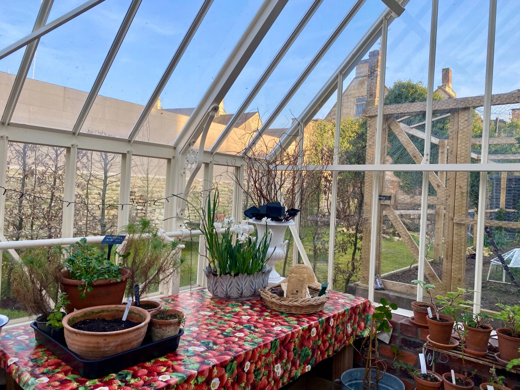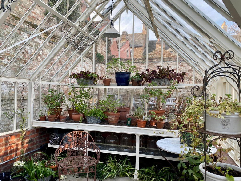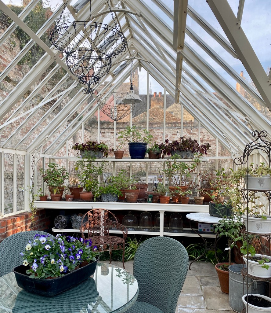 The glasshouse was looking somewhat unkempt. A sunny day brought a surge of energy. Everything taken outside; inside cleared of cobwebs, dead leaves and general debris. Windows and shelving cleaned and then everything returned to its place. So glad I brought the kitchen table from the old house.