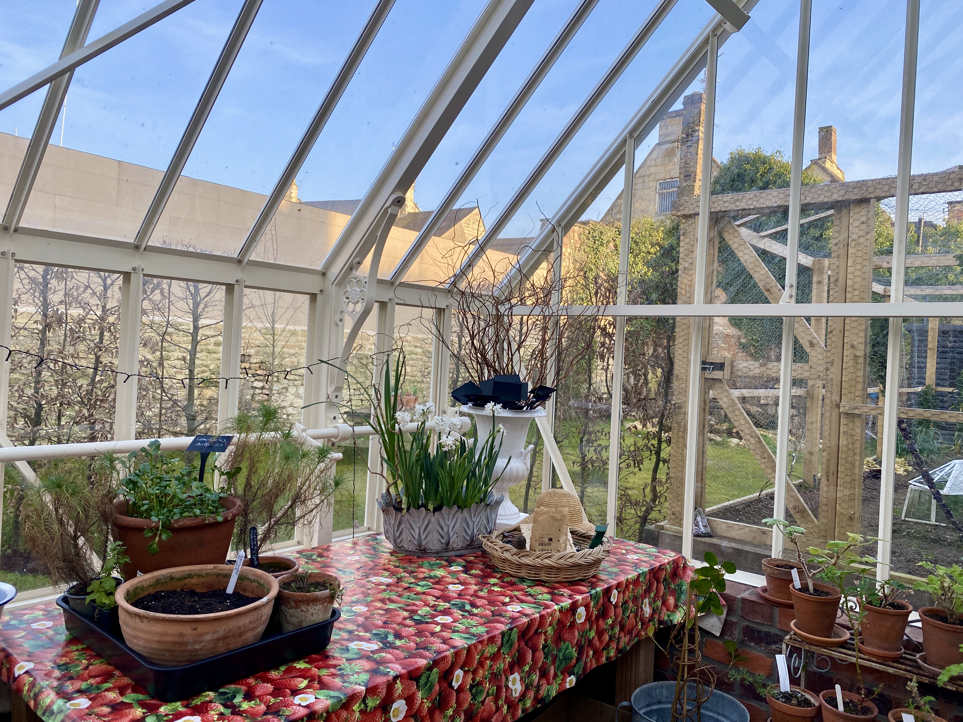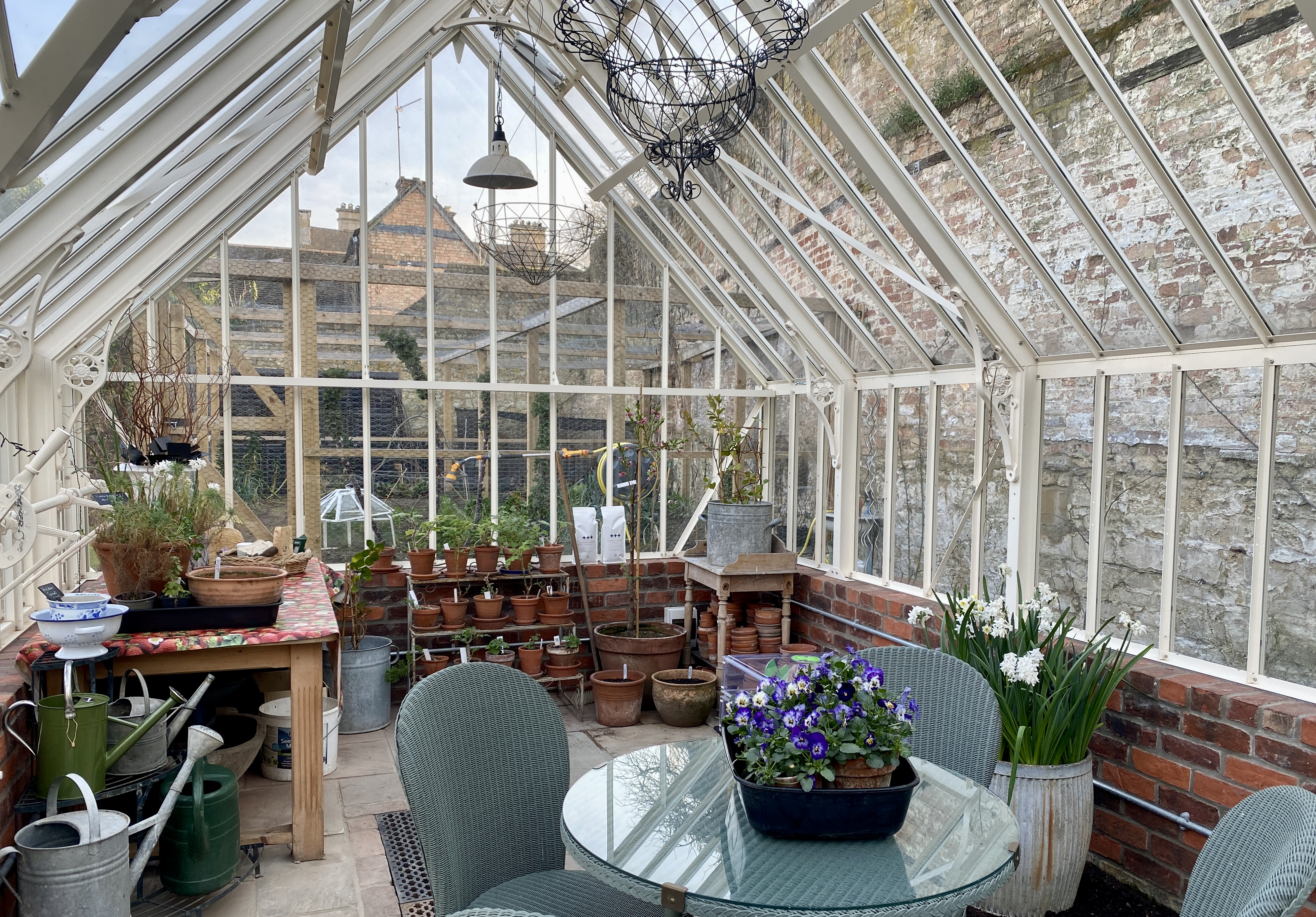 The glasshouse was looking somewhat unkempt. A sunny day brought a surge of energy. Everything taken outside; inside cleared of cobwebs, dead leaves and general debris. Windows and shelving cleaned and then everything returned to its place. So glad I brought the kitchen table from the old house.