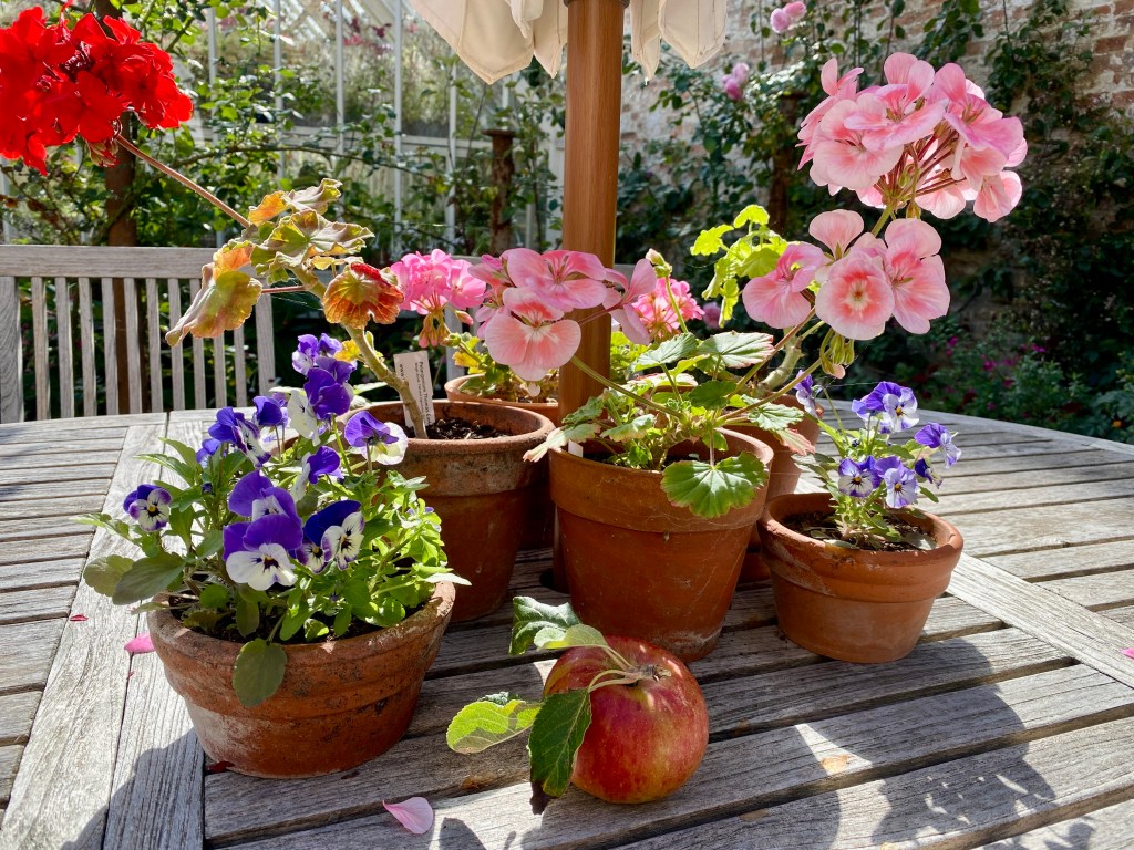 Hmm, so much for daily checking on the Cox’s Orange Pippins (planted only last year) to ensure harvest before they drop … I found this beauty on the ground. I suspect the local magpie. But it was unmarked and completely perfect.